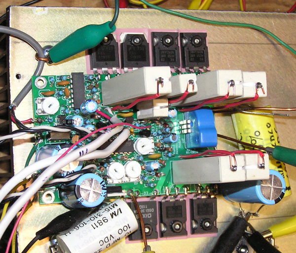 Here is the board mounted on a 12 x 6 heat sink, and there is more than enough room to built the entire RF amplifier on the same heat sink (which is what I'm going to do), creating a compact, 150 watt (input - about 135 watts out) transmiter.