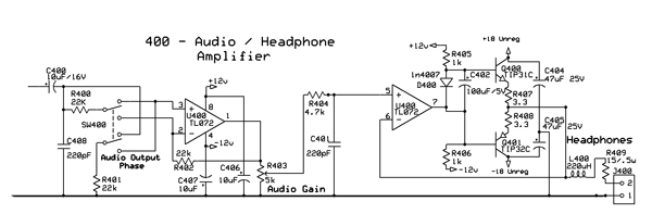 Below is the circuit from the REA modulation monitor that is used to drive headphones or output to an external audio amp with tone controls, etc.