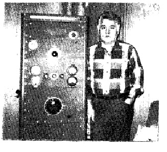 Coy McGinnis, KA8STS is shown beside his homebrew rig using a 250TH final with a pair of 304TLs as modulators. Coys 500 watt homebrew rig with 813 amplifier and 811A class-B modulator. A Ranger II is used as a driver for the amplifier and modulator.