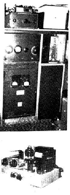 LOWER: the "38 Special" which is a homebrew transmitter using a xtal controlled 6AG7 driving a single 6L6 It runs 38 watts input (380 volts at 100 mills). Coy is presently working on a modulator for it.