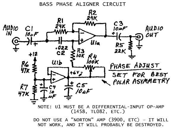 Increasing the bass boost diminished the polar asymmetry of the voice waveform. As I watched my voice waveform, I saw that it resembled several I'm seeing on the air, and I decided that the polar asymmetry would be greatly improved if phase of the fundamental voice frequency was advanced about 90 degrees relative to where it was.