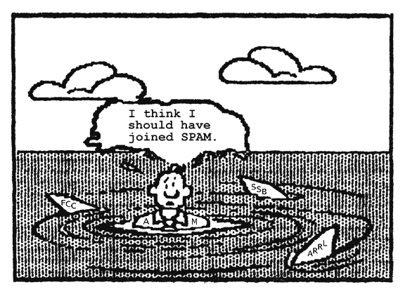 What is needed is a strong SPAM organization, which runs parallel with the League organization, i.e. 1 President and 16 SPAM board of directors. The directors would be set up and assigned to each of the ARRL divisions. The job of the SPAM director would be to lobby the ARRL director as to the wants and needs of the SPAM membership. SPAM HQ. will monitor the FCC and ARRL agenda items for AM issues. By organizing SPAM in this manner we can be more effective, it is easier to put out a fire if we can stop it before it ever gets started. If we wait until an issue has a docket number on it, the best we can do is a little damage control. A little work up front will pay off in the long run.