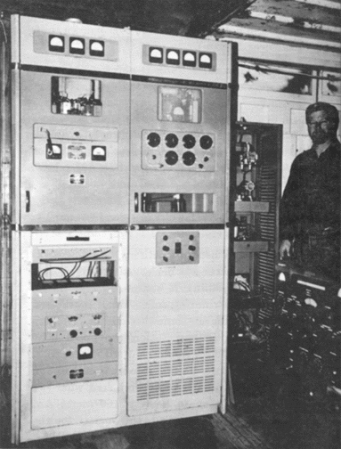 MEET THE AMers Patrick L. Person is shown with his 1KW Collins military transmitter T440/FRT24. It uses a 4-1000 in the final, modulated by a pair of 4-400A's. Coverage is 2-30 mhz and features the famous Collins Autotune. Visible in the background, in front of Patrick, is a 1939 homebrew transmitter using T55's in the final. The rig visible to the lower right is a Collins KWS-1. K7YIR reports having between fifty and seventy radios in his collection and is still looking for more! -TNX W6RNC