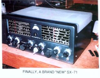 It was back in late 1959, early 1960 as a novice that I first became awareof the Hallicrafters SX-71 receiver, through Bert, W1HRG. A ham I greatly respected, he used an SX-71 coupled with a plate modulated Heathkit DX-35, and took net control of the Green Mountain Net in Vermont on a regular basis with this “combo”. Thus I knew the “71” was a good receiver. As a result, many years later, when I had a chance to trade an SP600 (that needed work) for an SX-71 that needed a “little help” I jumped at the chance, even though it had a “little rust” and a “little corrosion”. So, after swapping, I found myself the proud owner of a rusted SX-71 and the matching R-46 speaker, with matching rust to boot. I brought the receiver home, fired it up, and it seemed to work great. So what if it were a little rusted, no big deal. Well the rest became history as I found out what it would take to resurrect this receiver cosmetically. Let me share with you a story of frustration, challenge, victory and satisfaction of bringing this rig back to good looks. As I started to disassemble the receiver I removed the front panel and knew it was going to be a “challenge”. I was beginning to think the SP600 might not have been so bad after all. Anyway, one step at a time, easy does it; I proceeded to use a high-speed grinder, with Scotch-brand burnishing pads and proceeded to attack the front panel with limited results. I still could not get into the cracks and crevices and corner areas of the inside front panel to remove the rust. It was now time to take a break from efforts on the front panel, and move to attack the cabinet and top cover. The results were better, but I was still not happy with the look. Another “time out,” and I then decided to look at the chassis. Here was a real challenge, and I knew I was going to be in for some fun to remove the corrosion along the front apron where all the controls were mounted. I was really beginning to think the SP600 would have been the better deal, particularly at that point. I was trying to devise in my mind a way of removing this corrosion without disassembling the whole receiver part-by-part. I was not interested in making a “Heathkit” out of this receiver and even if I had gone the disassembly route, there would be no guarantee after all this labor that some critical part would not be damaged in the process. So what to do? I decided to return to the cabinet & front panel, and then an idea came: What about sandblasting? That sounded drastic but why not: This rust had to be completely removed before I would be satisfied, so, I decided it would be worth a try. A friend of mine had access to a sandblasting booth, and told me to bring the radio and “go to it”. It took a little time, but the results were great! I was able to remove all the rust on the front panel cabinet and top cover. Next I coated the bare metal with a self-etching primer. The cabinet & front panel looked 100% better and I hadn’t even applied the final coat. Ok, now back to the chassis, what to do? I had thought of using a Dremel grinder, with a wire brush or even a sanding disk, to work around the controls, and some of the components on the chassis. A great idea but still would not yield the kind of results I was looking for. Then, I had another brainstorm, how about sandblasting the chassis? It seemed great, or was it? Given the circumstances if it didn’t work I would just put out an ad for another SX 71 parts radio on QTH.COM or ER. So, with contingencies in place I proceeded to remove the tubes, the main tuning capacitor, the bandspread capacitor, and partially removed the power transformer. Also removed were all the front panel controls from the apron. I laid the controls off to one side but still connected, and proceeded to mask off all of the tube sockets, power transformer, and underneath the chassis. I then covered all of the critical areas with clear plastic. The real problem would be the good chance of getting some sand into the bandswitch wafers and the pots and switches on the front panel. So after the masking I grit my teeth, and proceeded to sandblast the whole top of the chassis and the front apron, both inside and out. It cleaned out the corrosion in a FB way! The real challenge lay ahead: How to now get rid of the residual sand that remained in the cracks and crevices underneath the chassis, and sure enough, now in the critical areas such as the bandswitch and the front panel controls. I blew out all I could with compressed air. I then used a lot of contact cleaner to work any remaining sand out of the bandswitch. You can tell when its out, as the switch will not feel gritty when its perfectly clean. I then attempted to clean the front panel controls, but must confess that ultimately I had to replace them. I was fortunate to have some spare. volume, tone, sensitivity controls and toggle switches thanks to WD8D. We were now on our way to a good looking radio. I decided to prime the cleaned chassis with a good self-etching auto primer to arrest any future corrosion, and while its not nickel plating, it is 100% better than it was. Oh, I might add that the dial support assembly had to be removed, along with the dial stringing pulleys. Although reassembly and restringing of the dial assembly was required, it really was not that bad, especially since the manual for the SX-71 provides restringing instructions. I had also sandblasted the main tuning condenser, (protectively knowing I have a spare one) and found that after blasting it, I successfully worked out the sand from the bearings with a tuner cleaner. Then, after repainting the chassis, I proceeded to remount the tuning capacitor, bandspread capacitor, power transformer, etc. I used new hardware to replace the old corroded hardware, and the radio was starting to look like a radio again. After re-installing all the tubes, dial support, and dial assembly, I powered the receiver up and voila; the receiver