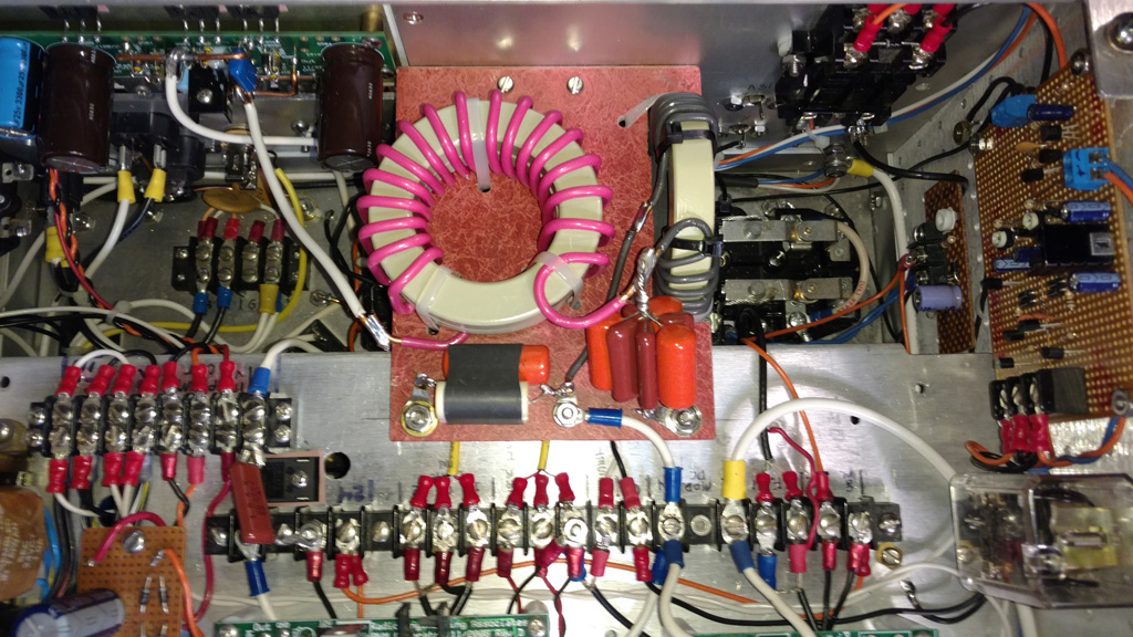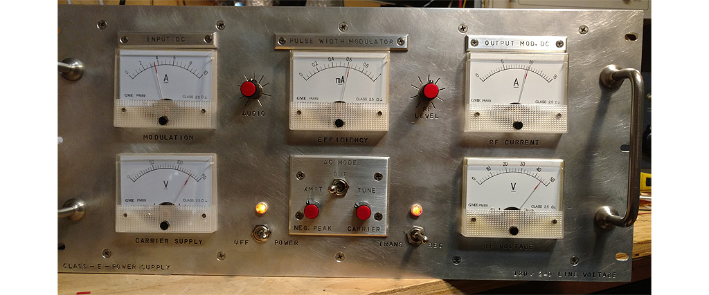 Wayne WA1SSJ just completed a new 450 Watt (carrier) Pulse Width Modulator /Power Supply for his transmitter.  Wayne completed the RF amplifier a few years ago.  Wayne had been using an analog modulator (with the existing RF amplifier from a few years ago), but built this one because it is considerably more efficient and is a lead-in for a more powerful unit in the future.